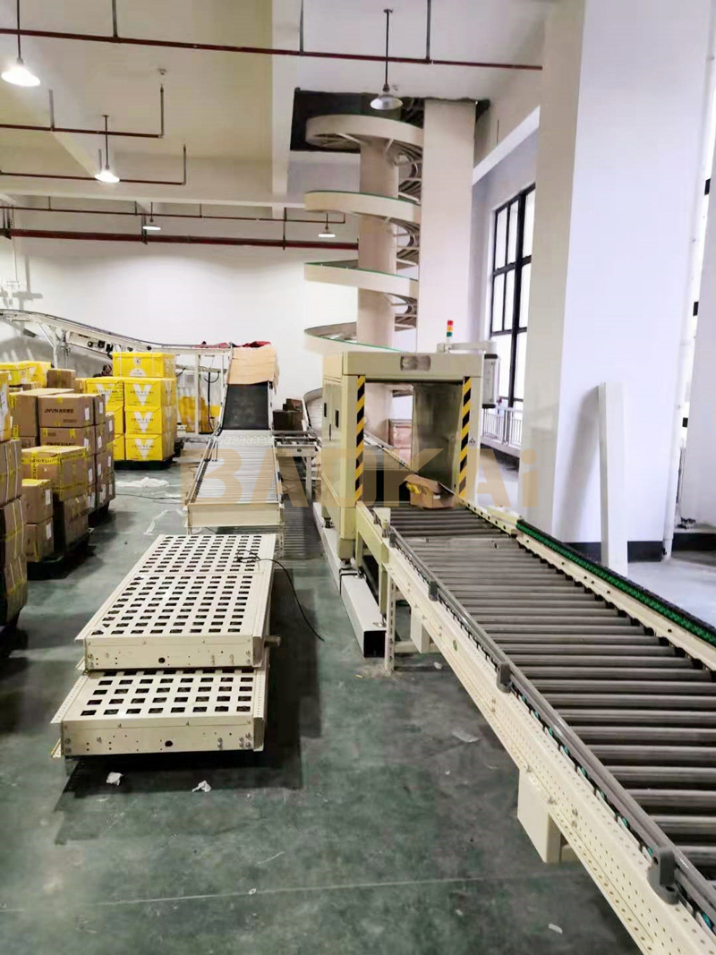 服裝大中型項目,新建7層樓庫物流配送中心。項目集成:交差帶分揀機、箱式輸送分揀線、螺旋提升機、自動打包、貼標、稱重等。系統(tǒng)處理能力3000箱/小時。