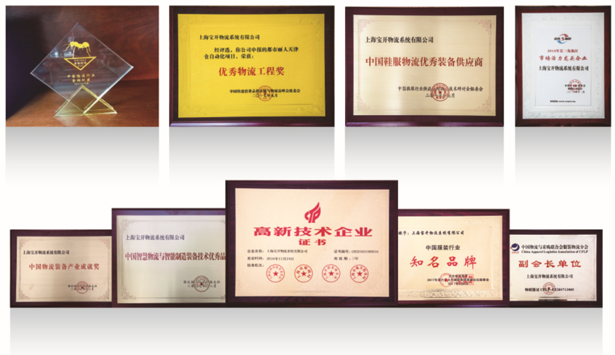 作為上海市高新技術(shù)企業(yè)、ISO認(rèn)證企業(yè)、雙軟認(rèn)證企業(yè) ,寶開(kāi)多項(xiàng)核心技術(shù)已獲得國(guó)家專(zhuān)利,同時(shí),寶開(kāi)是中國(guó)物流與采購(gòu)聯(lián)合會(huì)服裝物流分會(huì)副會(huì)長(zhǎng)單位,中國(guó)倉(cāng)儲(chǔ)配送協(xié)會(huì)家居物流分會(huì)會(huì)員單位,《物流技術(shù)與應(yīng)用》雜志理事單位,榮獲“2016年長(zhǎng)三角地區(qū)市場(chǎng)活力龍頭企業(yè)”、“2016-2017年度中國(guó)物流行業(yè)金螞蟻獎(jiǎng)”、“全國(guó)發(fā)明金獎(jiǎng)”(AS/RS立體倉(cāng)庫(kù)系統(tǒng)在紡織行業(yè)的應(yīng)用)、“2018致敬改革開(kāi)放中國(guó)鞋服供應(yīng)鏈與物流優(yōu)秀集成商”、“2018中國(guó)制造業(yè)優(yōu)秀物流工程獎(jiǎng)”、“2019鞋服供應(yīng)鏈與物流優(yōu)秀供應(yīng)商”、“2019物流裝備產(chǎn)業(yè)產(chǎn)品技術(shù)創(chuàng)新獎(jiǎng)”、2020年吳涇地區(qū)“創(chuàng)新活力獎(jiǎng)”等多項(xiàng)榮譽(yù)。