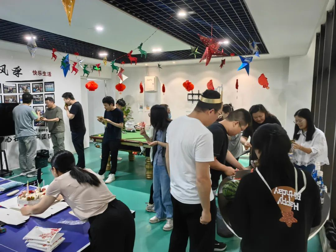 嘉興分公司現(xiàn)場生日會和慶祝活動也同步進(jìn)行,辦公室內(nèi)歡樂滿滿,其樂融融。