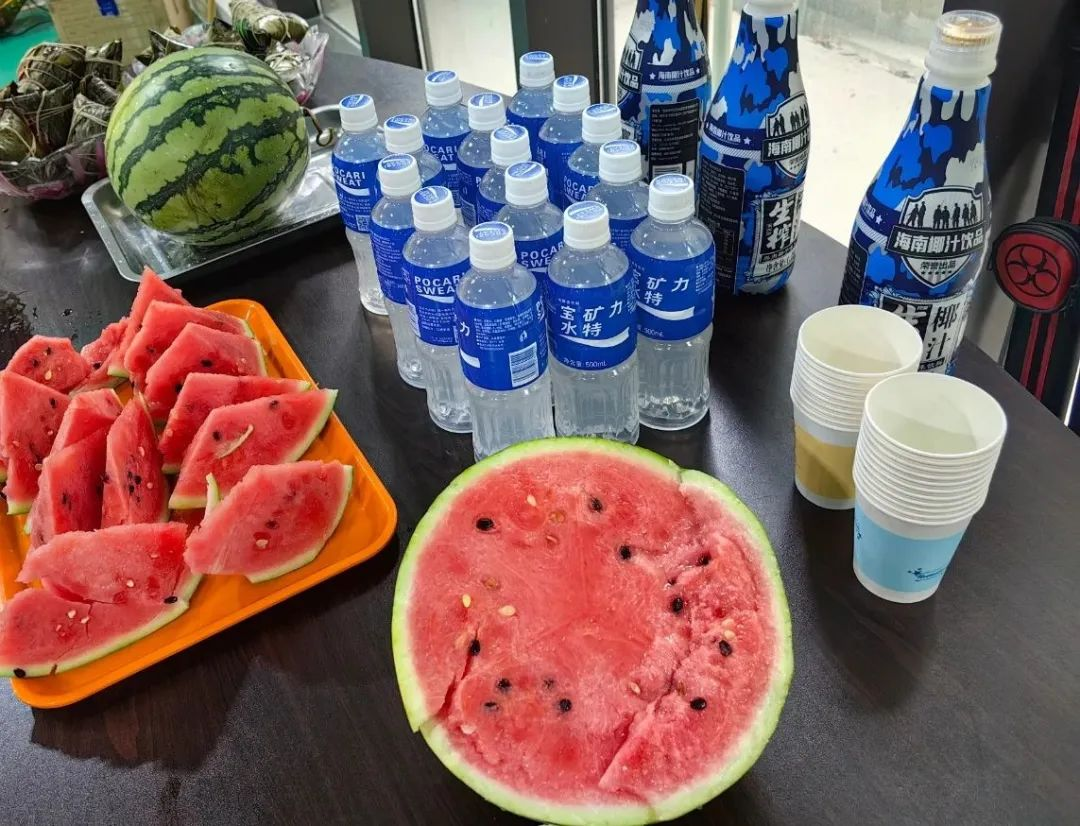 寶開工會委員會提前籌備,準(zhǔn)備了生日蛋糕、不同口味的粽子、水果、飲料等。