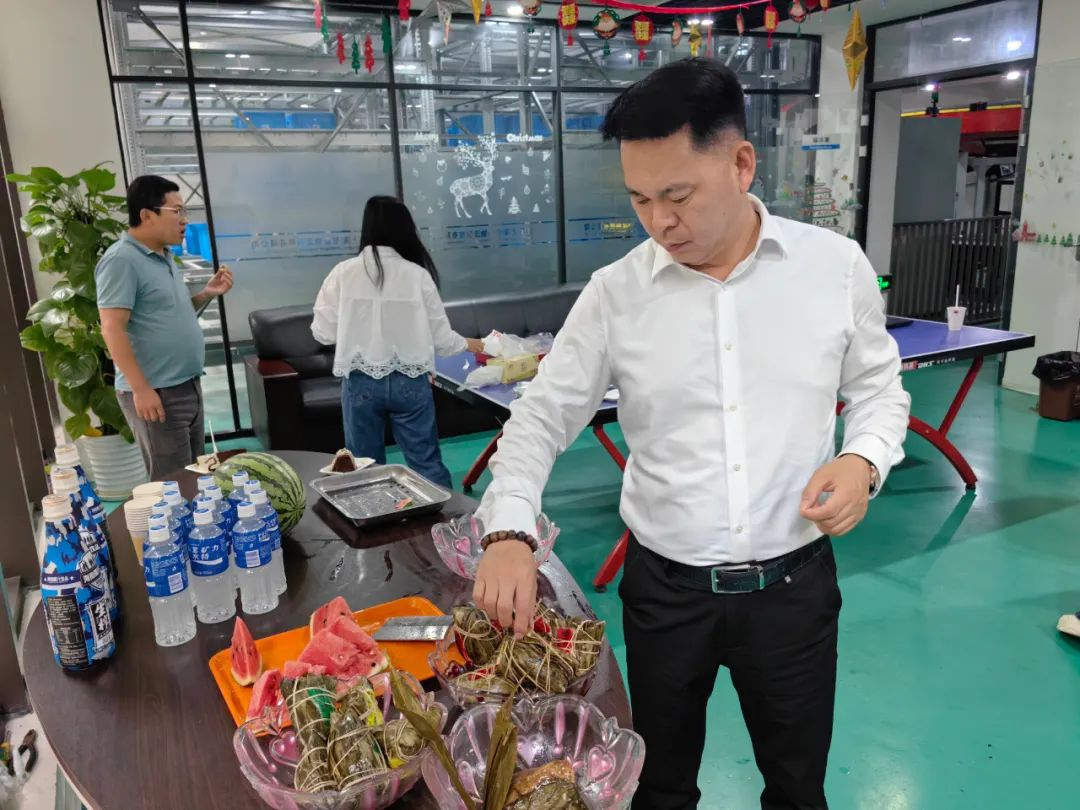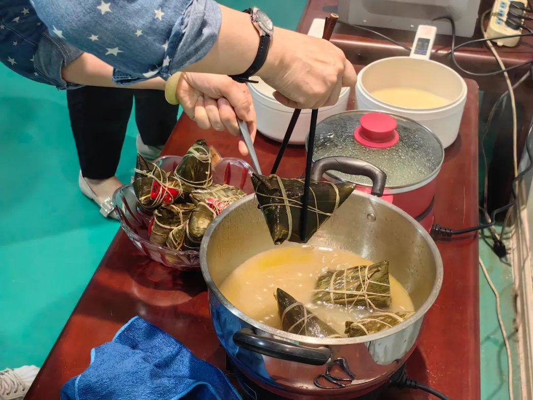 中午時分,煮熟的熱騰騰的粽子出鍋,全體同事來到活動室,共享端午佳節(jié)的團(tuán)聚時光。