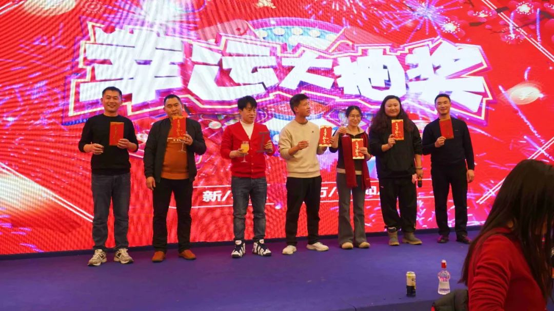 各位領(lǐng)導逐一上臺為大家抽取并為幸運兒頒發(fā)獎品,同時臨時增設(shè)超額獎勵和隨機紅包,逐漸將晚宴氣氛推向高潮。